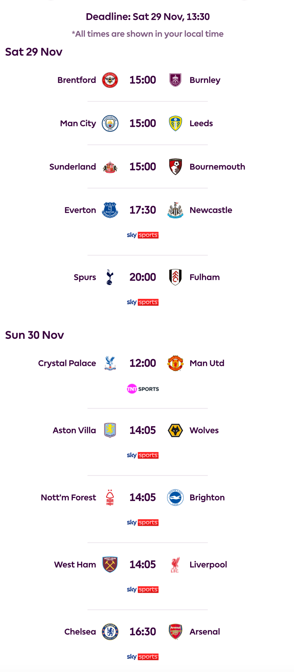There’s then just the one game on Monday but don’t panic as GW34 then gets underway on Tuesday!