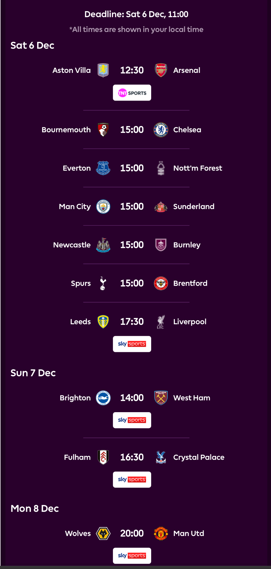Finally, we conclude on Wednesday with Man United welcoming West Ham before Chelsea go to Liverpool.