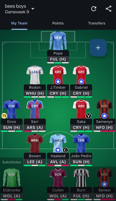 I got Haaland and got bowen in this week. Still have j pedro. Likely to do j pedro to matera after next gw as mateta plays arsenal away. Woltemade good option too.