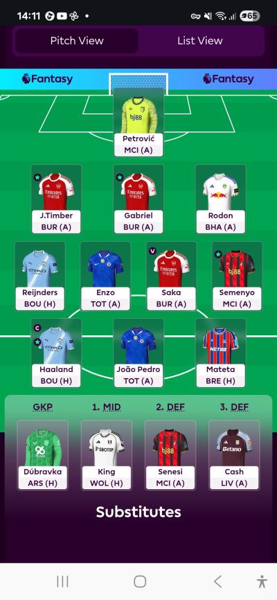 Unsure what to do with JP. Only real other option is Woltemade, but he ain’t even on pens. Thinking Reijnders to Mbeumo. Just sit the keeper out this gameweek.