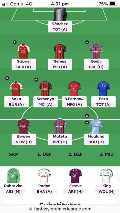 Sunday has 4 games crammed in at 2pm; Arsenal v Crystal Palace, Aston Villa v Man City, Bournemouth v Forest and Wolves v Burnley. Before Everton and Spurs round the GW off at 4.30pm.