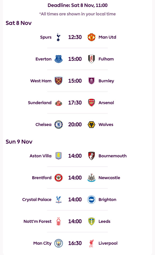 Gameweek 11 is all about balance — five games on Saturday, five on Sunday. Nice and tidy. Almost suspiciously organised for the Premier League.