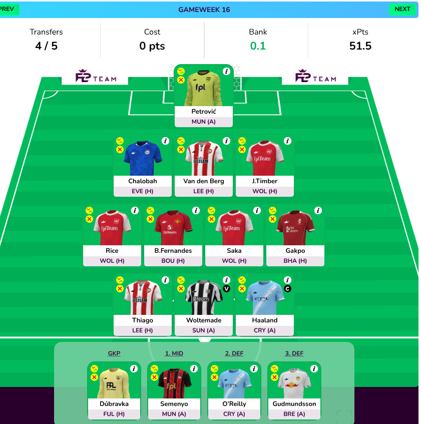 Then GW16 Mateta > Thiago, Mbeumo > Bruno, Barnes > Gakpo and Guéhi > £4m