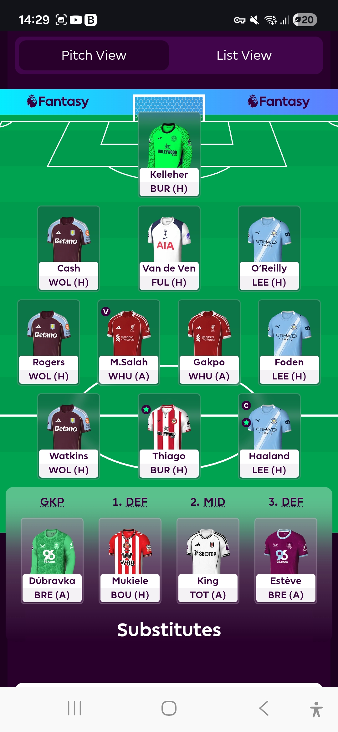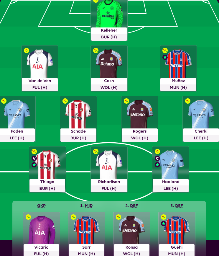 Watkins, Salah, Haaland and Thiago penalty takers. All easy fixtures. No double ups in defence.
