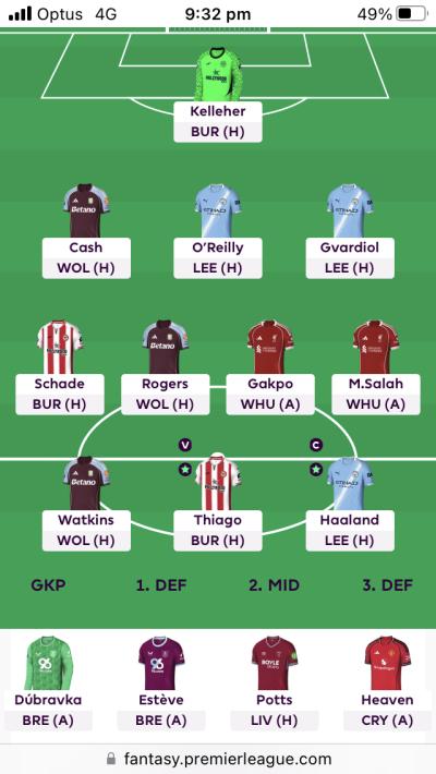 I would drop gvardiol and put either Doku or Foden. Doku preferably. Whole team was rested so they ll start. Would remove Gakpo. Not even sure on Salah but he is a differential now. Would still mix it up, just players from 4 teams u got.