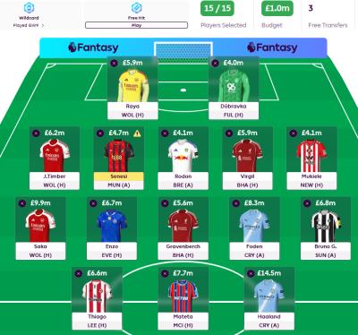 Hey everybody – I’ve gone into full ‘Sheep-mode’, as I saw that many of the players I wanted were going up in price last night – so jumped on the ‘Jumbuck’ bandwagon and traded in Foden, Thiago & Timber. I know it’s unwise as there’s CL coming up this week, but I got sick and tired of seeing those three names (amongst others) being responsible for my team scoring poorly (it’s very graphic in that respect on Live FPL site!). So, holding on till Thursday morning, hoping that there’ll be no injuries!!!
