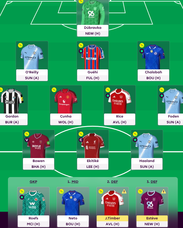 First on your bench might play this week. Also, Timber playing as a back again which means he plays more attacking compared to the central role. Think this is best for him, Gabriel and Arsenal.