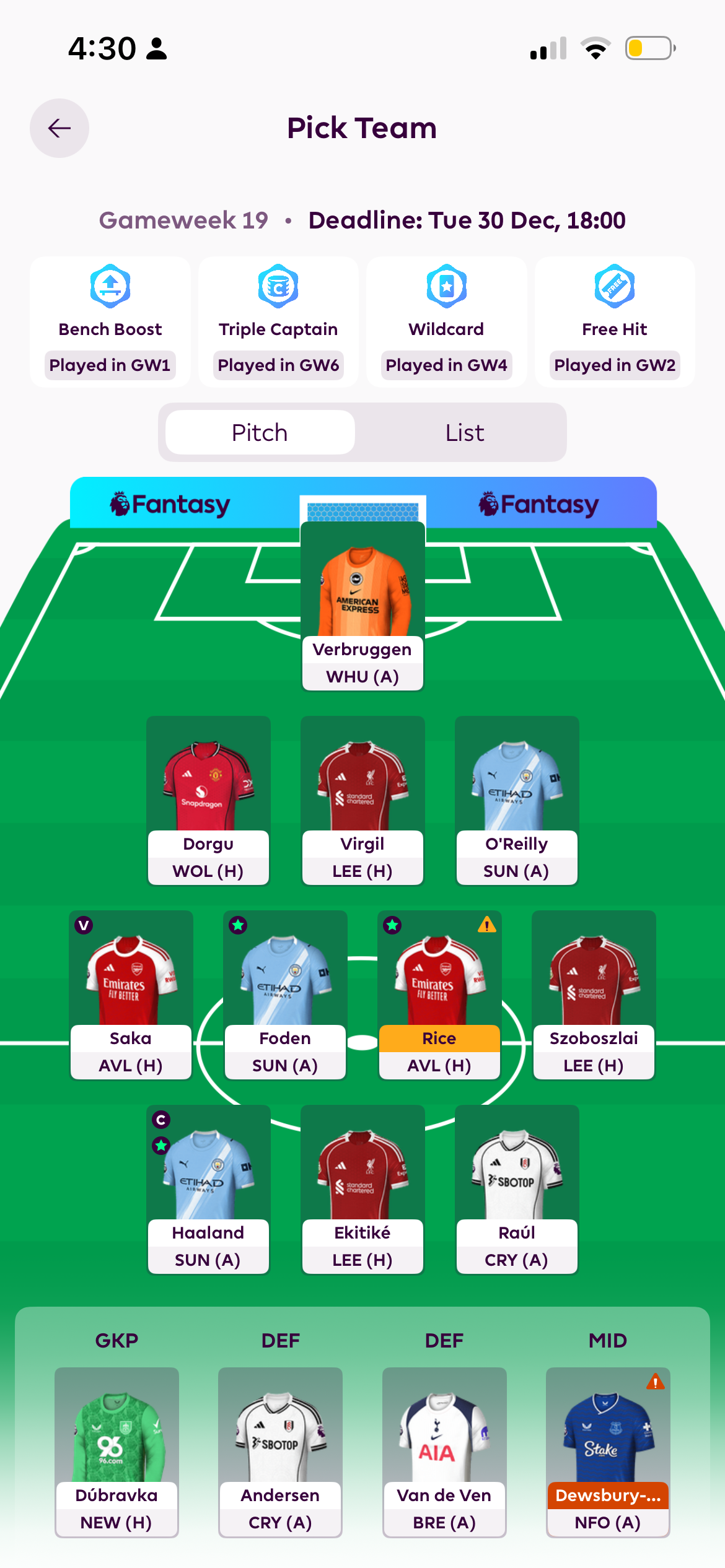 GW18 – Deadline Fri 26th Dec 6.30pm