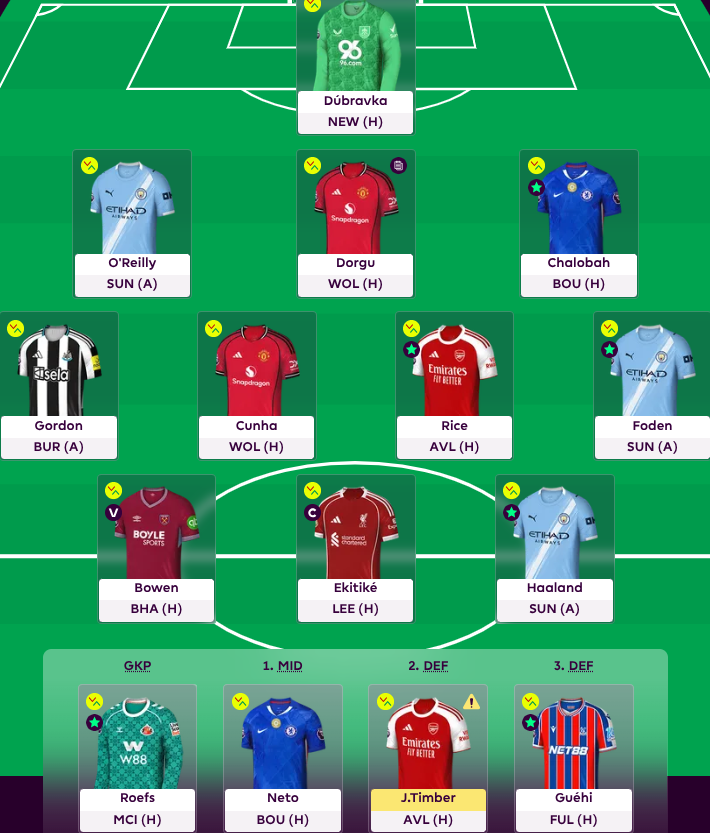 Woltemade also seems to play 70 minutes per game, not much more. So I will consider one of those DCL/Thiago/Bowen. I still want some Newcastle cover, so in that case Gordon will stay. That would mean Foden out for Cherki, which would leave me enough money to upgrade anything needed.