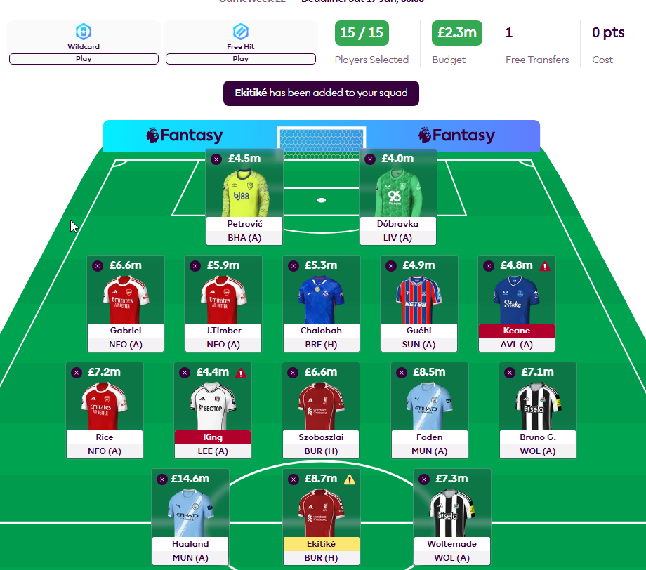 Hmm. I’m actually keeping Ekitike for the Burnley game. I’m quite annoyed with the loss of value of my team though.