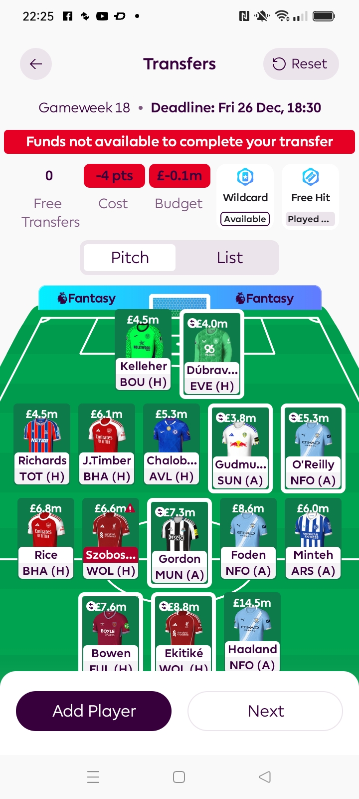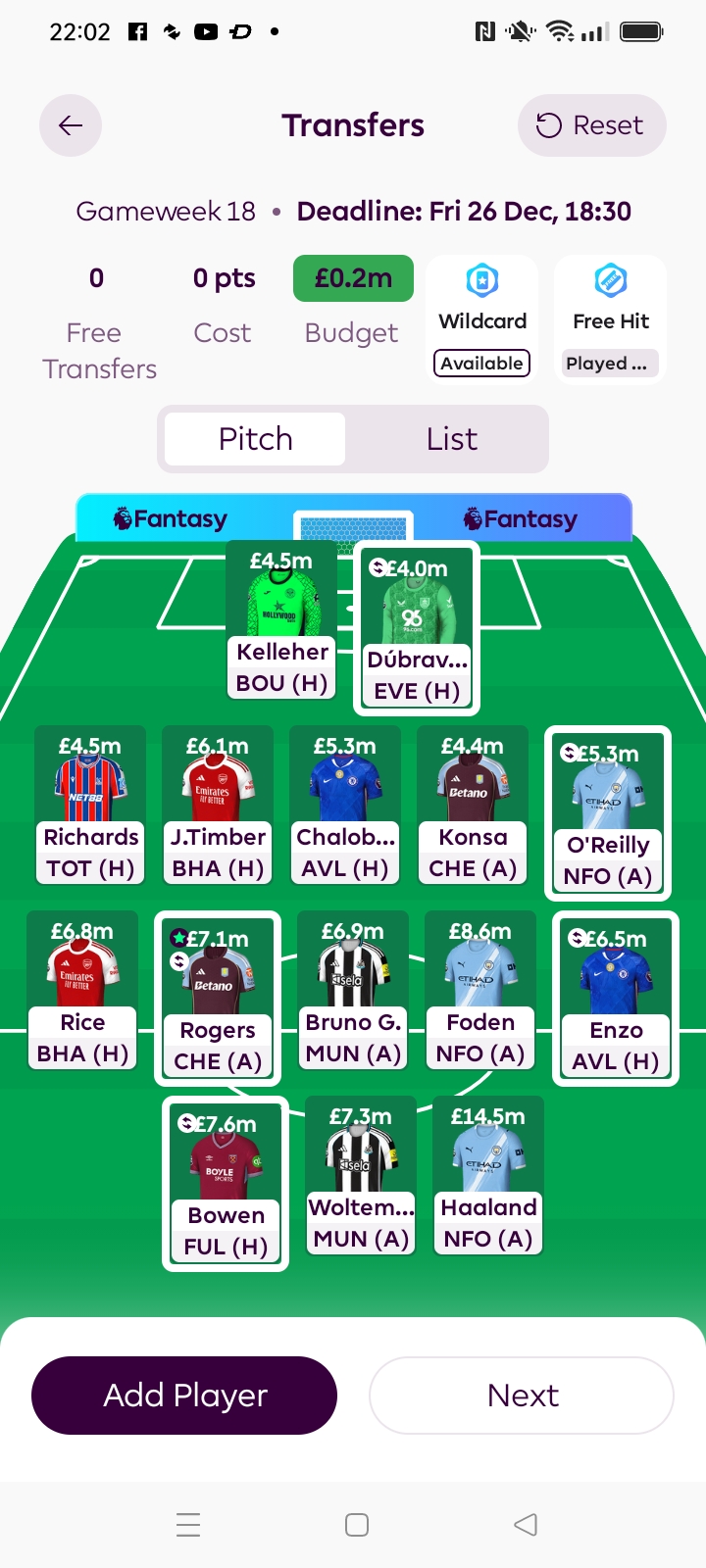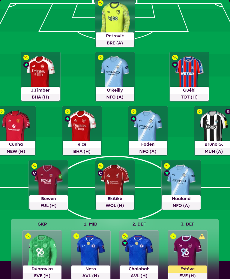The problem is, the way you have it now, you have to play Foden & Haaland and also Bruno.G & Waltermade, so you are going to have to decide who to bench from Bowen, Rice, Rogers or Enzo and out of these the only one that doesn’t seem to be performing is Enzo.