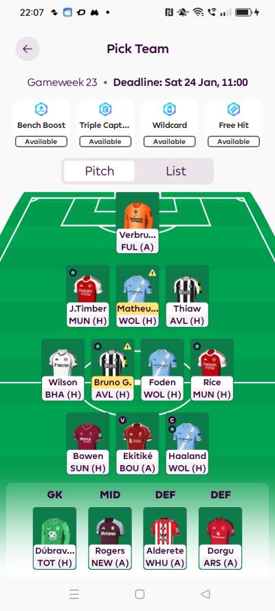 But Foden > Semenyo, Bruno.G > Bruno.F, Rogers > Palmer isnt possible. I would be 4m short for Palmer.