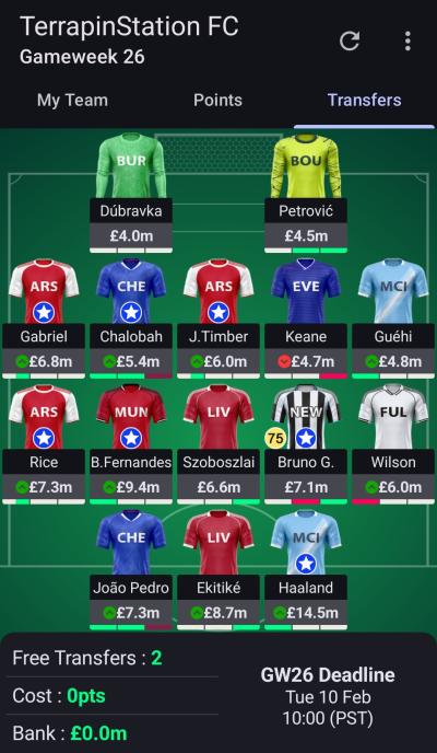 Happy I kept Thiago. Was thinking Thiago to Pedro this gameweek but did Dorgu to Chalobah. Palmer was never on my mind before.