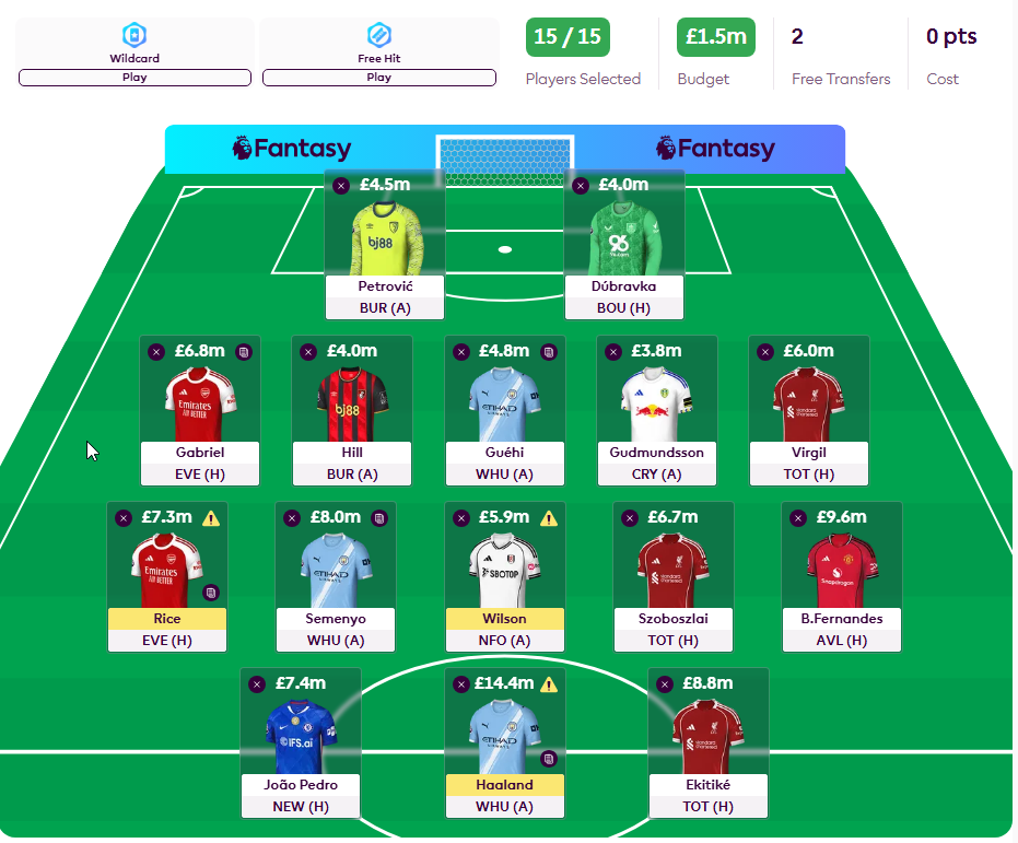 Rice and Haaland start!