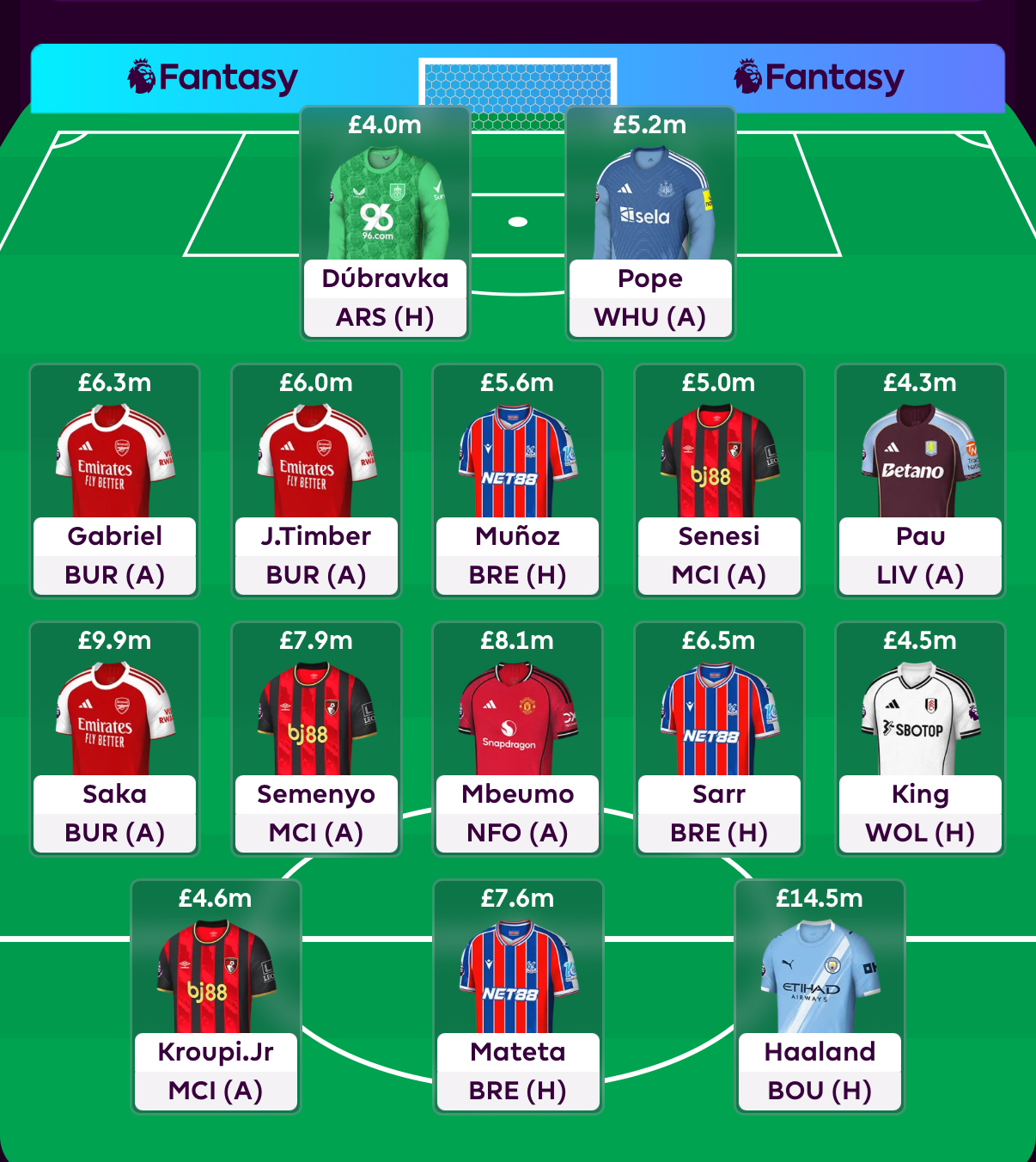 I think Salah, Baleba and Barry out for Semenyo, Mbuemo and Mateta.