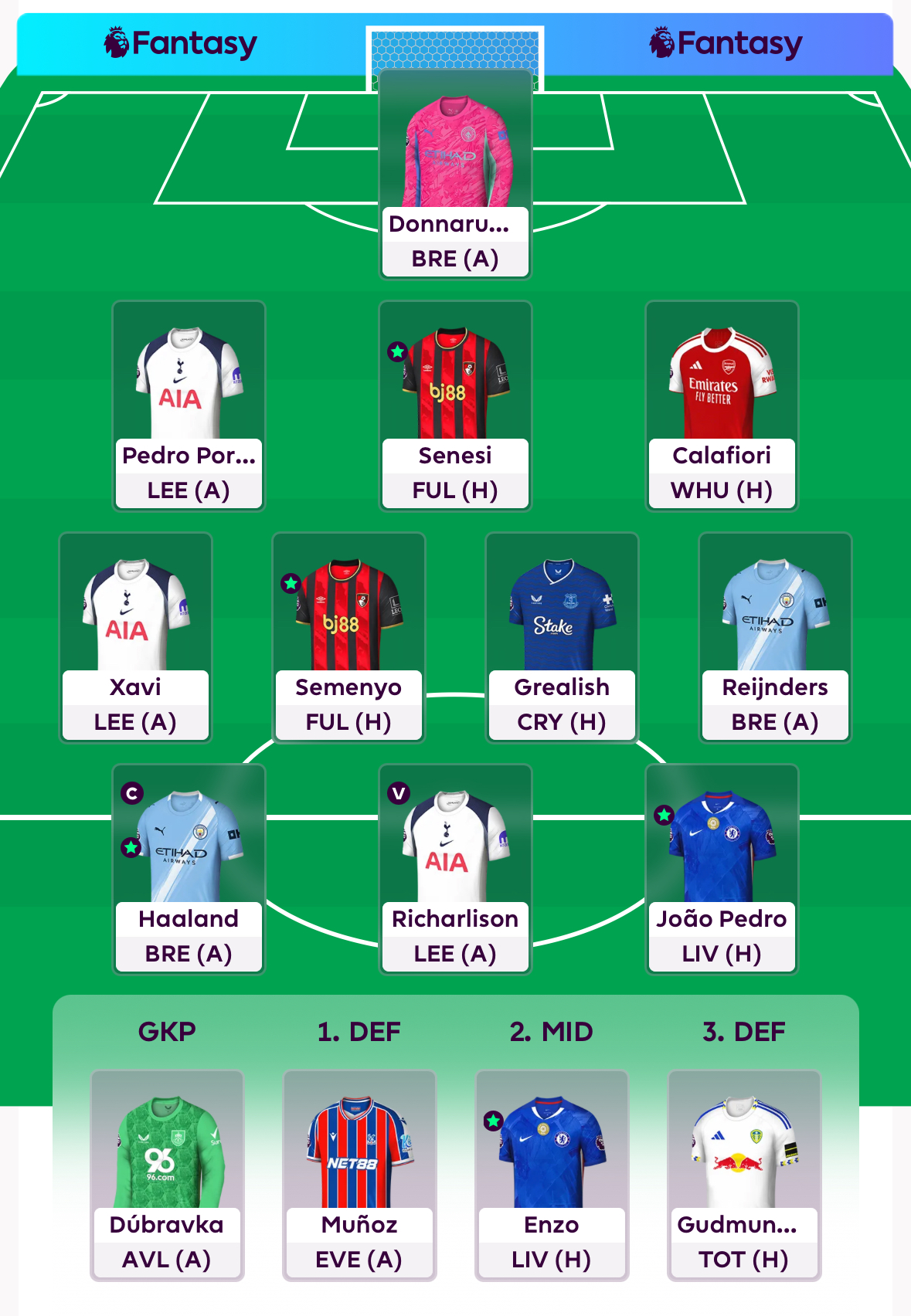 We finished on 50 points which was just above the average but 32 of those came from our captain. The rest of the team was full of 1’s and 2’s with Cucurella getting 0 and Anderson getting 3 to buck the trends.
