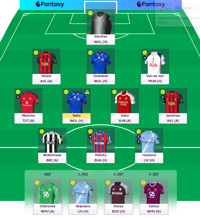 As for Captain it was pretty easy, why fix what isn’t broken. Haaland is scoring every week so lets just leave it on him.