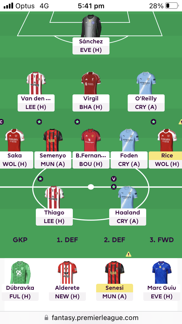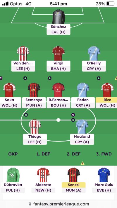 I’m not sure which defenders to start this week. I have no Arsenal defenders (I do have the exact cash to go Virgil to Timber)