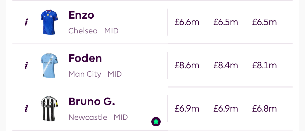 I have Calafiori up £0.2 but no rise in SP. Enzo £0.1 but no change in SP yet Bruno up £0.1 and SP up £0.1. Makes no sense