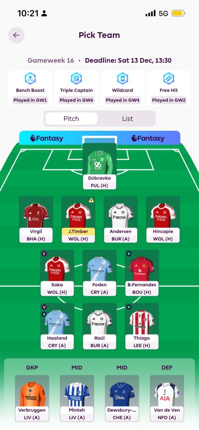 Raya was an obvious way back into the Arsenal defence, negating their other injury woes back there. Anderson has some decent fixtures and is cheap. Ekitike is the punt here but again he has good fixtures, should see more game-time now that Salah has spat his dummy out, and has arguably been Liverpool’s 2nd best player all season anyway. And no Mo, you weren’t 1st.