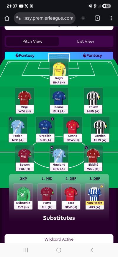 Like the Yoro idea, assuming that they can keep a CS against Wolves, next week should pay off. Newcastle away are iffy, so maybe Nunes / O Reilly or downgrade Raya to Donnarumma and switch to Hincampie instead of Thiaw. Could also go Miley instead of Potts for the BB next week.