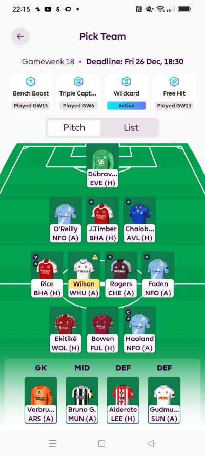The XI largely picks itself. There’s a triple-up on Bournemouth for their plum fixture against Burnley, while City at home to West Ham feels like an early Christmas present. Form players Wilson and Foden make the cut, and we’re asking Arsenal for a clean sheet — which feels about as safe as leaving mince pies unattended around Big Sam.