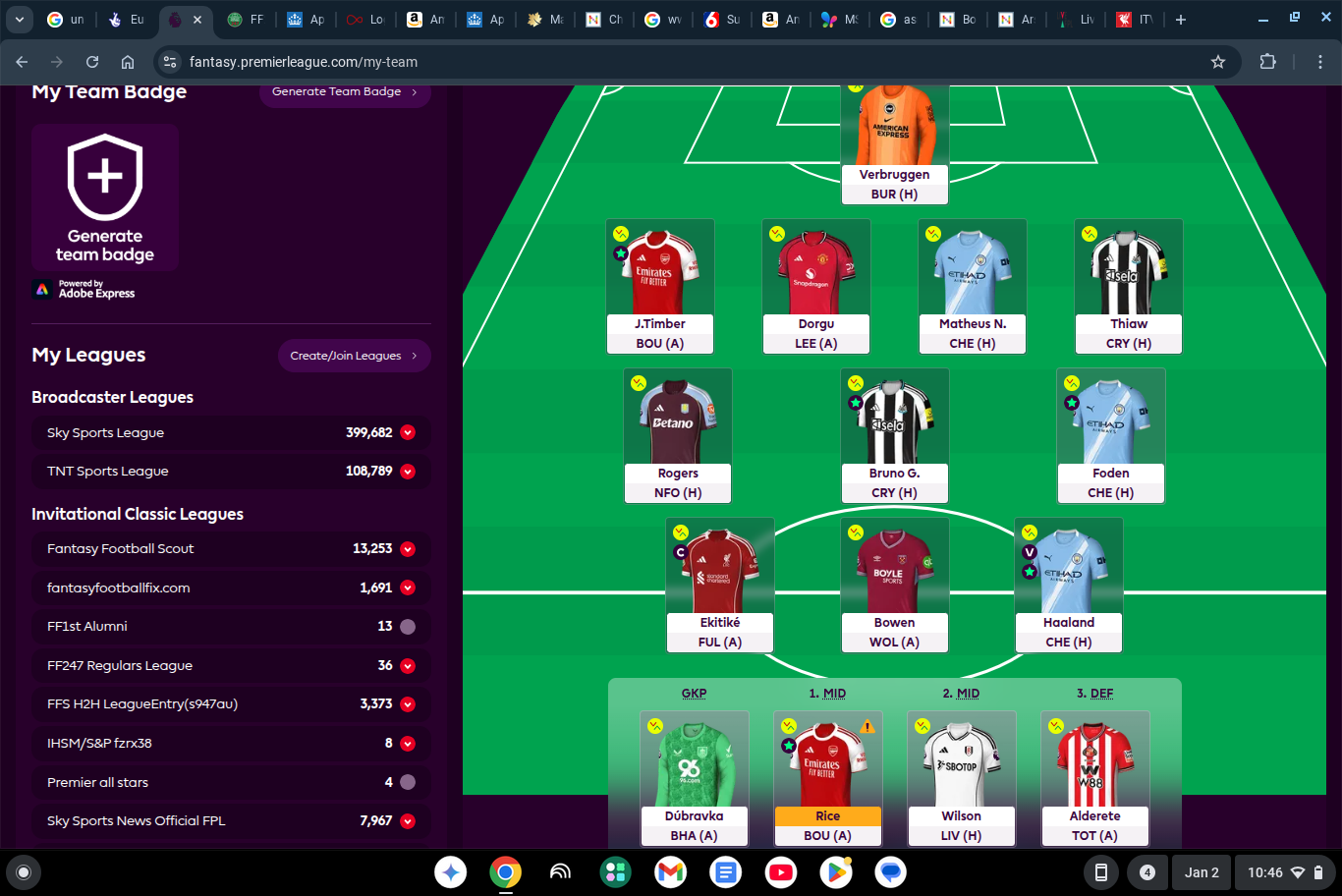 We’ve now pressed the Free Hit button, locking in our festive chip strategy. Next week brings the Wildcard, followed by a slightly unhinged Bench Boost in peak rotation season. Sensible? No. Seasonal chaos? Absolutely.