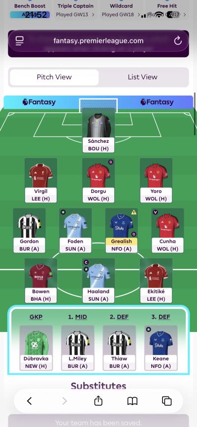 Morning. Not a regular on here but enjoy the content. Was hoping some of you more seasoned managers might be able to advise on my WC? This team has me fully spent up and I have a BB to play next week. Any help appreciated.