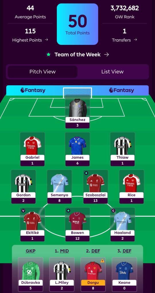 We only had 4 players return and a big thank you to them. Bowen with 12, Szoboszlai with 13,Semenyo with 8 and James with 6. Not setting the world alight but solid returns none the less.