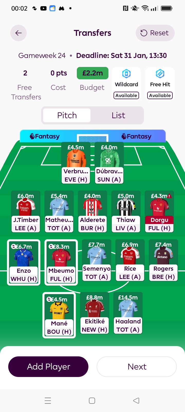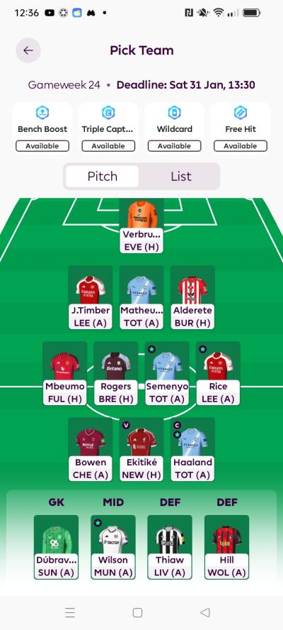 Thanks fellows. Well I did have Timber, and Kelleher as GKP, but changed them around to Raya and Chalobah. Who would I sell to get Timber? And who is Dan? Do you mean Donnaruma? Anyway thanks again for the advice.