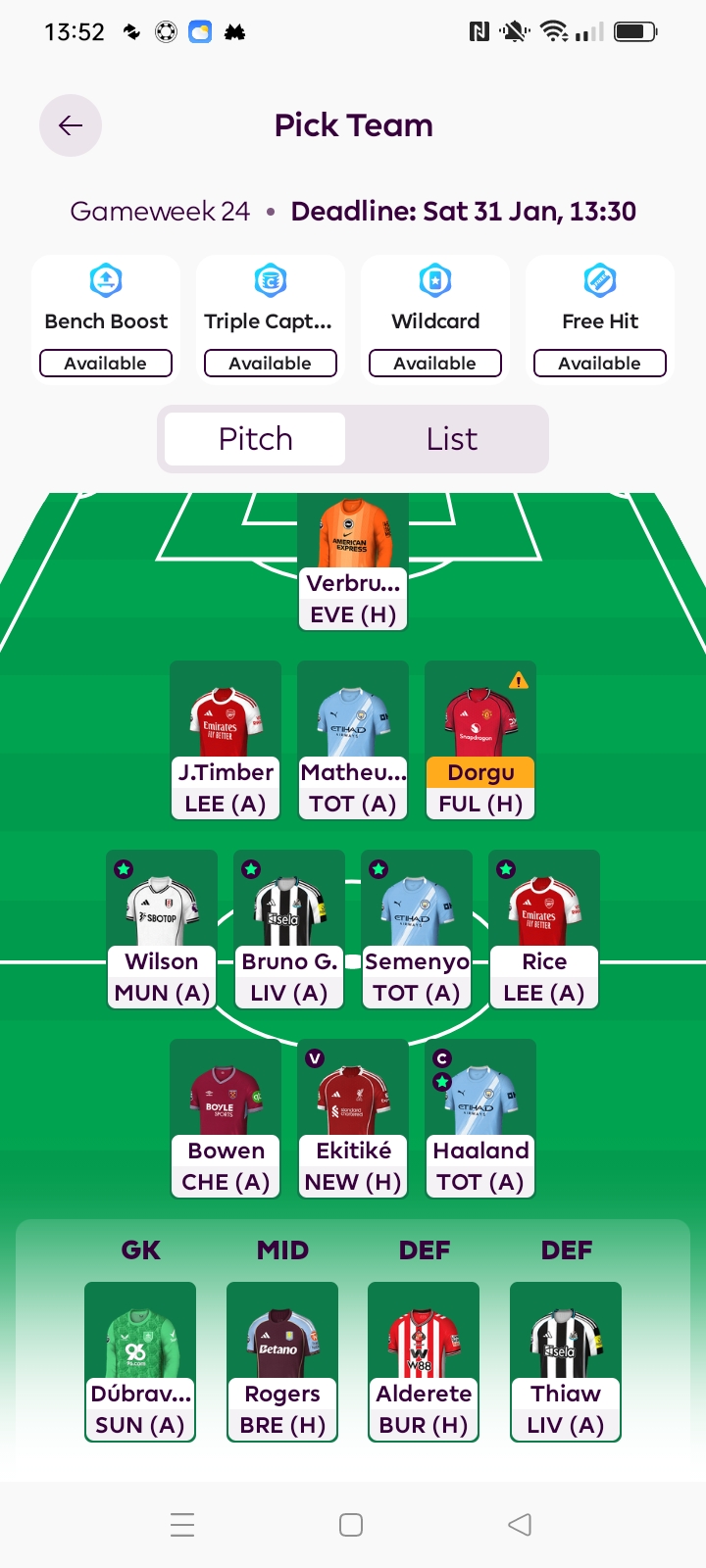 We only had 4 players return and a big thank you to them. Bowen with 12, Szoboszlai with 13,Semenyo with 8 and James with 6. Not setting the world alight but solid returns none the less.