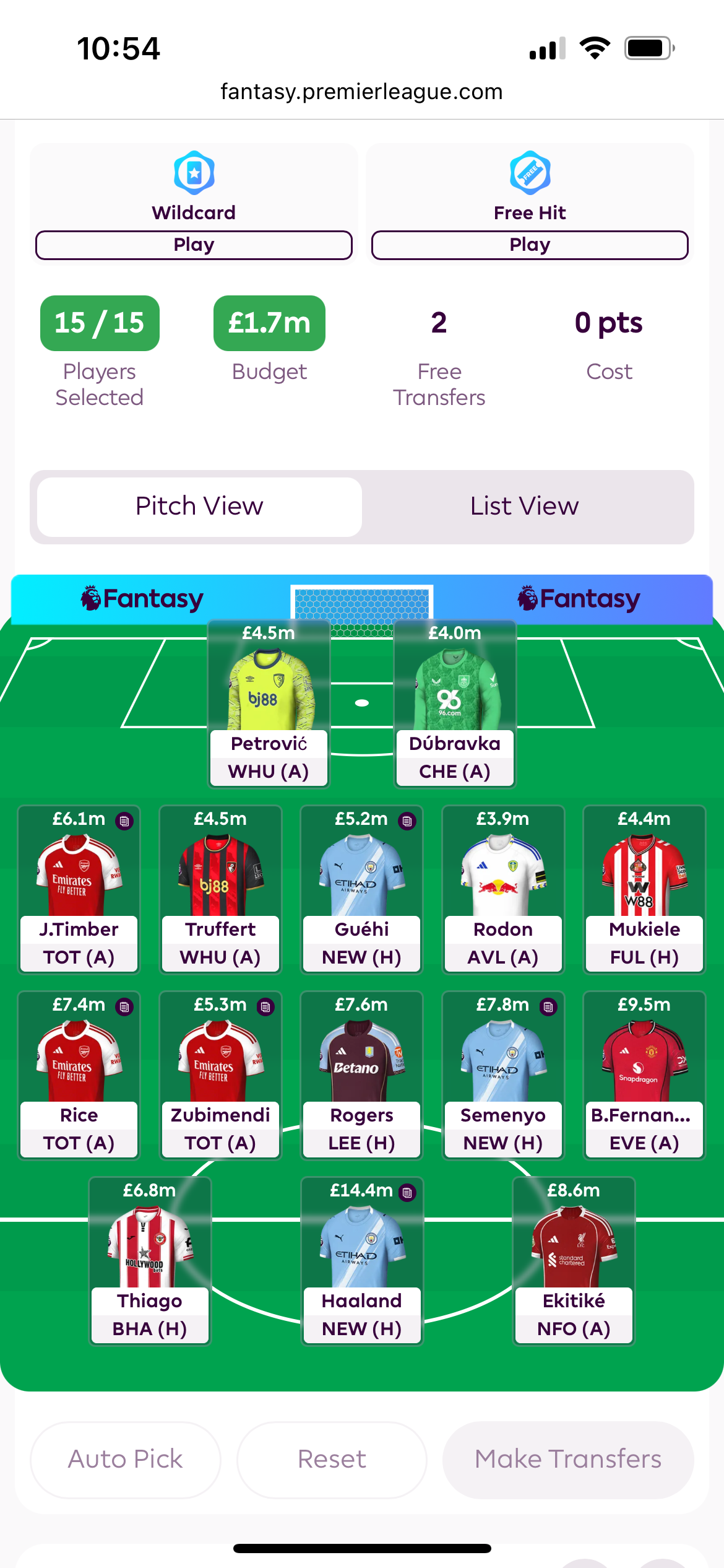We will keep it simple. We know there are a few question marks but with very little in the bank and only 1 FT, we have decided to roll and look for some more flexibility next week with an extra FT.