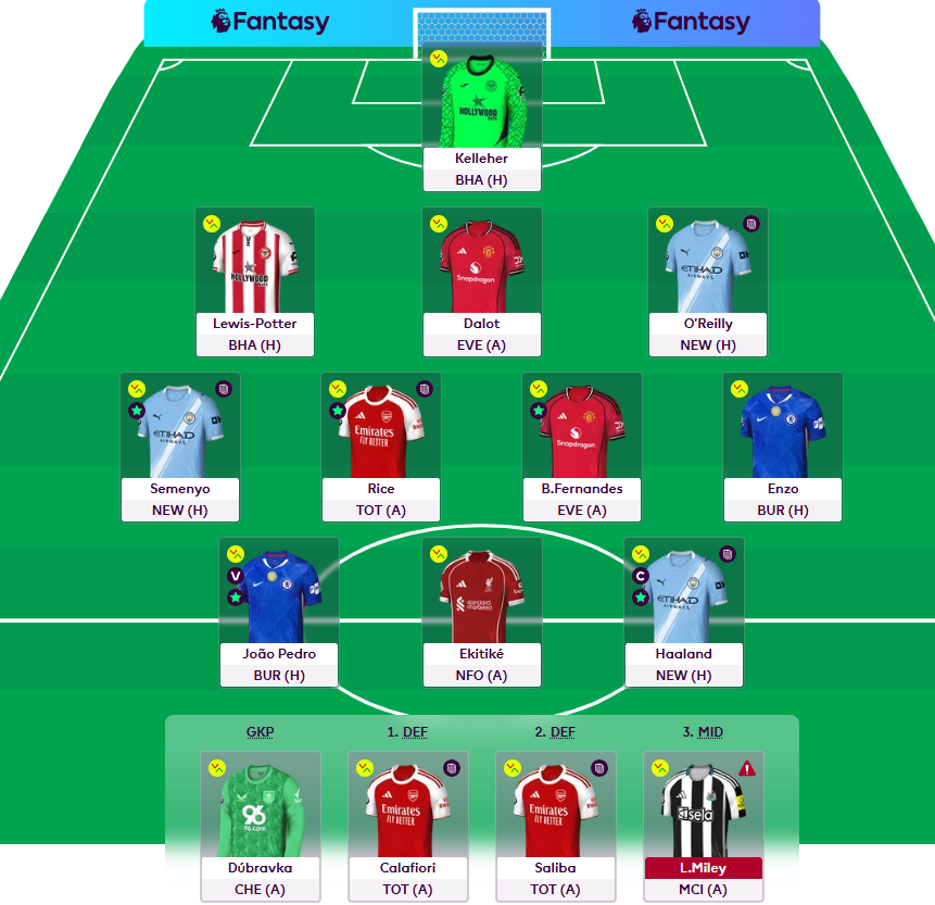 Captain Gabriel didn’t hit the heights we were hoping for but atleast we didn’t burn our Triple Captain on him. Hill stuck on our bench with 9 points hurts so we will just ignore it. Semenyo and Rice carried the team with 14 points each so we tip our caps at them. Haaland, Bowen and Mbeumo chipped in with 5, 5 and 6 respectively but the rest of our miserable lot for 1s and 2s.