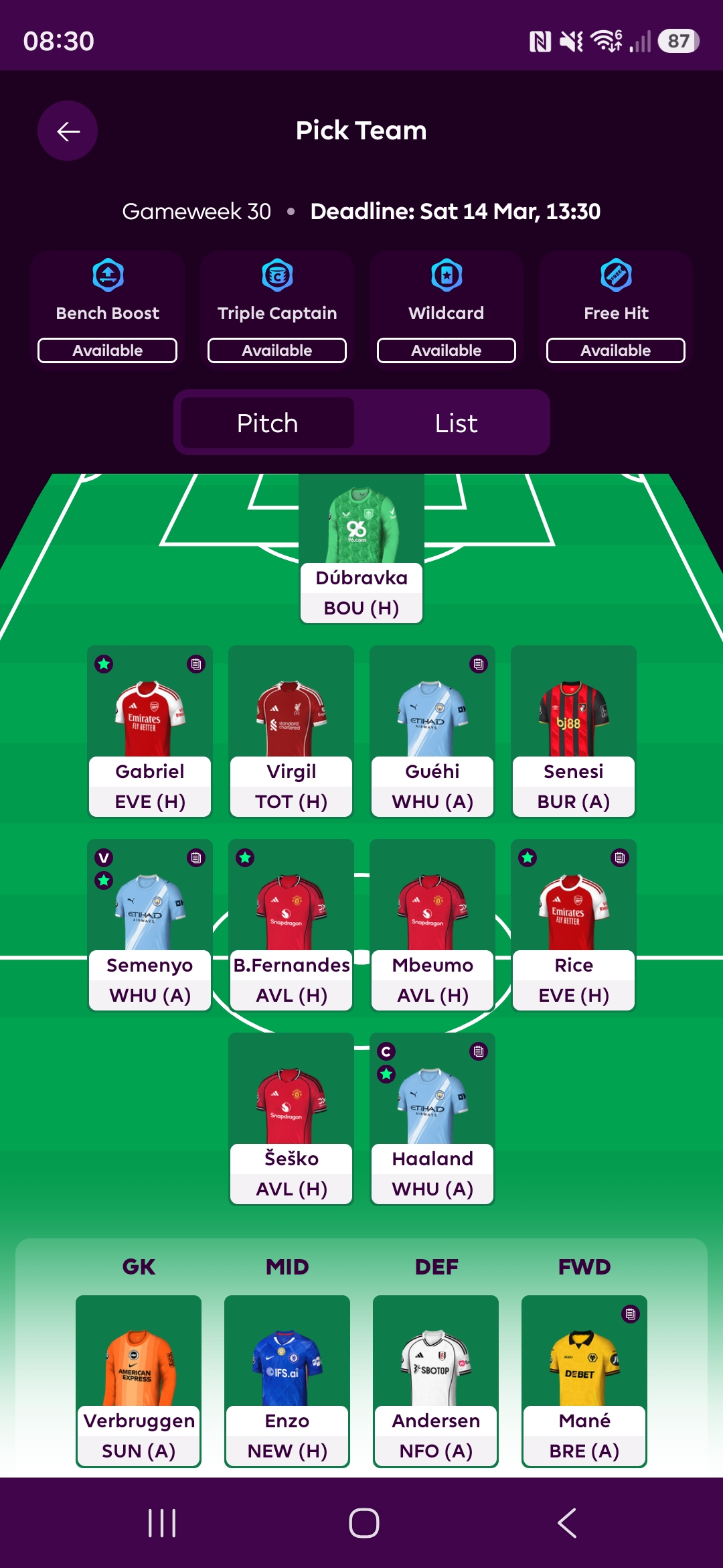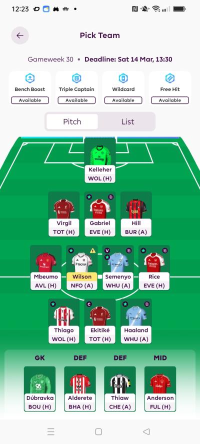 The presser from Fulham said Wilson should be good to go. I think I’m rolling my FTs and will deal with the blanks next week. Your team is fine for that strategy too in my opinion.