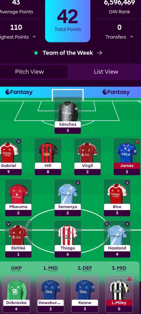 We only had 3 players return this week with Gabriel, Hill and Thiago all getting something. The rest of our team finished with 1s, 2s and 3s. Not good enough unfortunately.