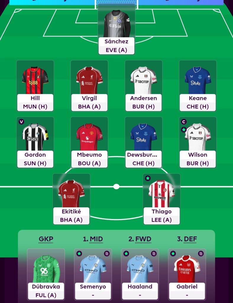 We had a few flags and a few blank players this week so we needed to make some changes. Now thankfully we had built up a bank of transfers. With Miley and James being confirmed out we just made it simple, sell them both but also sell Rice to play the fixtures. We decided to bring in Andersen, Wilson and Gordon who play Burnley and Sunderland.