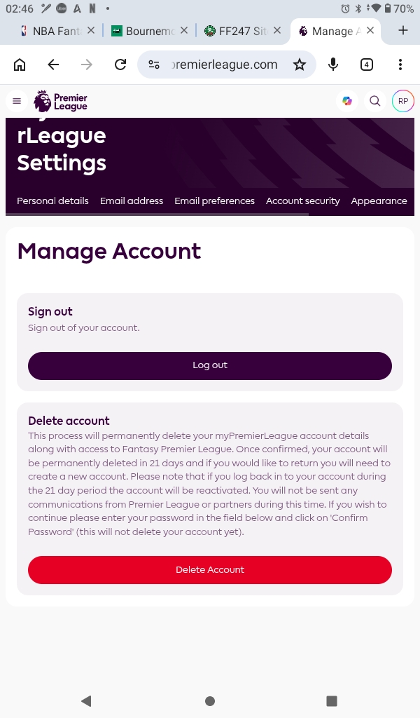 Fuck. The premiere League is tonight. I’m out. Deleting my fcking account.