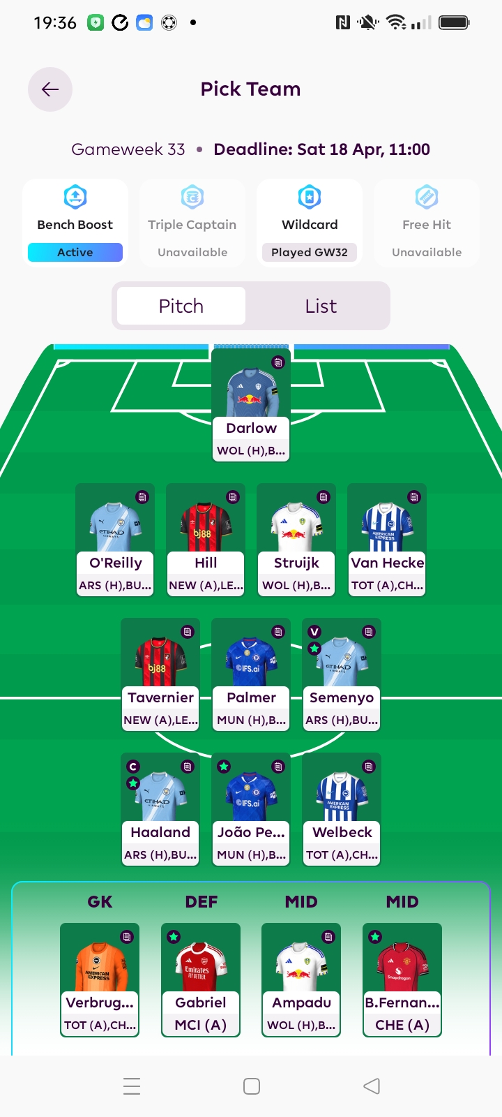 Our GW33 team in full…