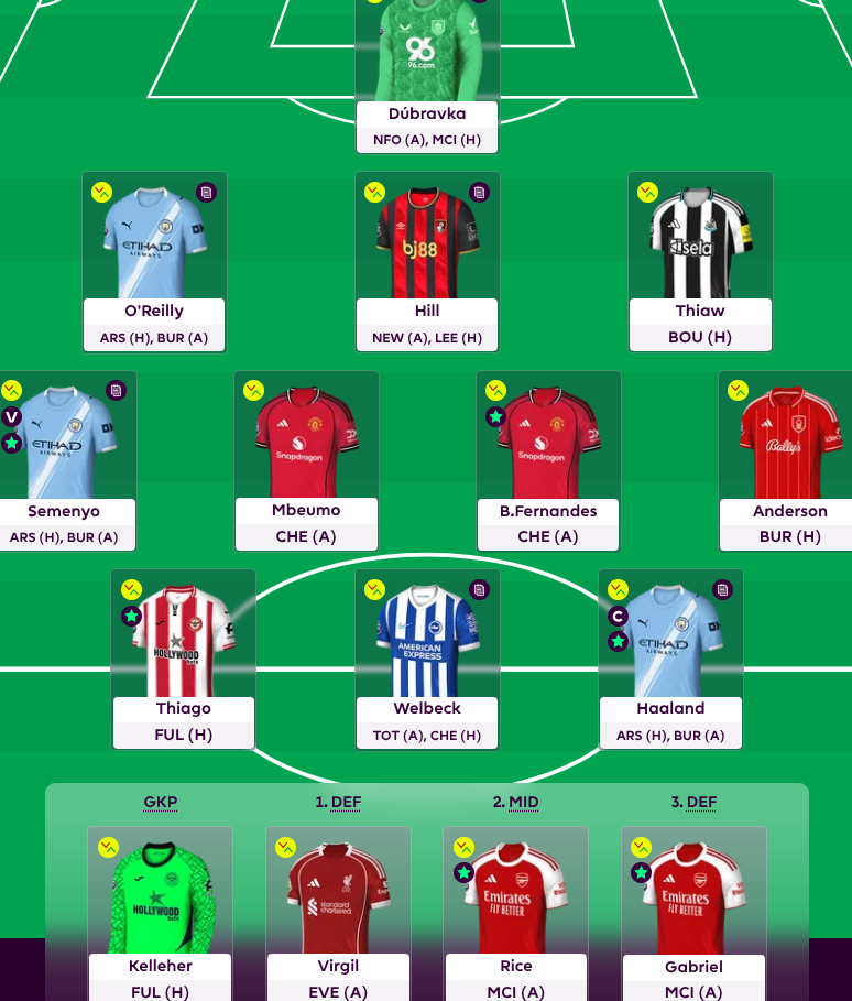 Not a lot! As was expected, tbf. We obviously set up for this week with 14 doublers. Assuming Nico gets a clean bill of health then the below is what we shall go in with. If he doesn’t then that will be our sole move and we shall shout accordingly.