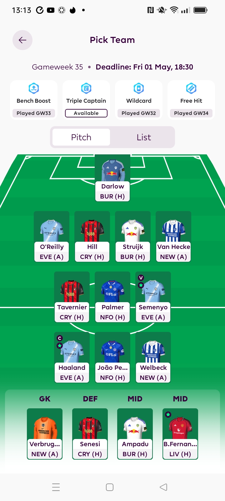 No games on Sunday so it’s Man Utd v Brentford on Monday to end the GW.