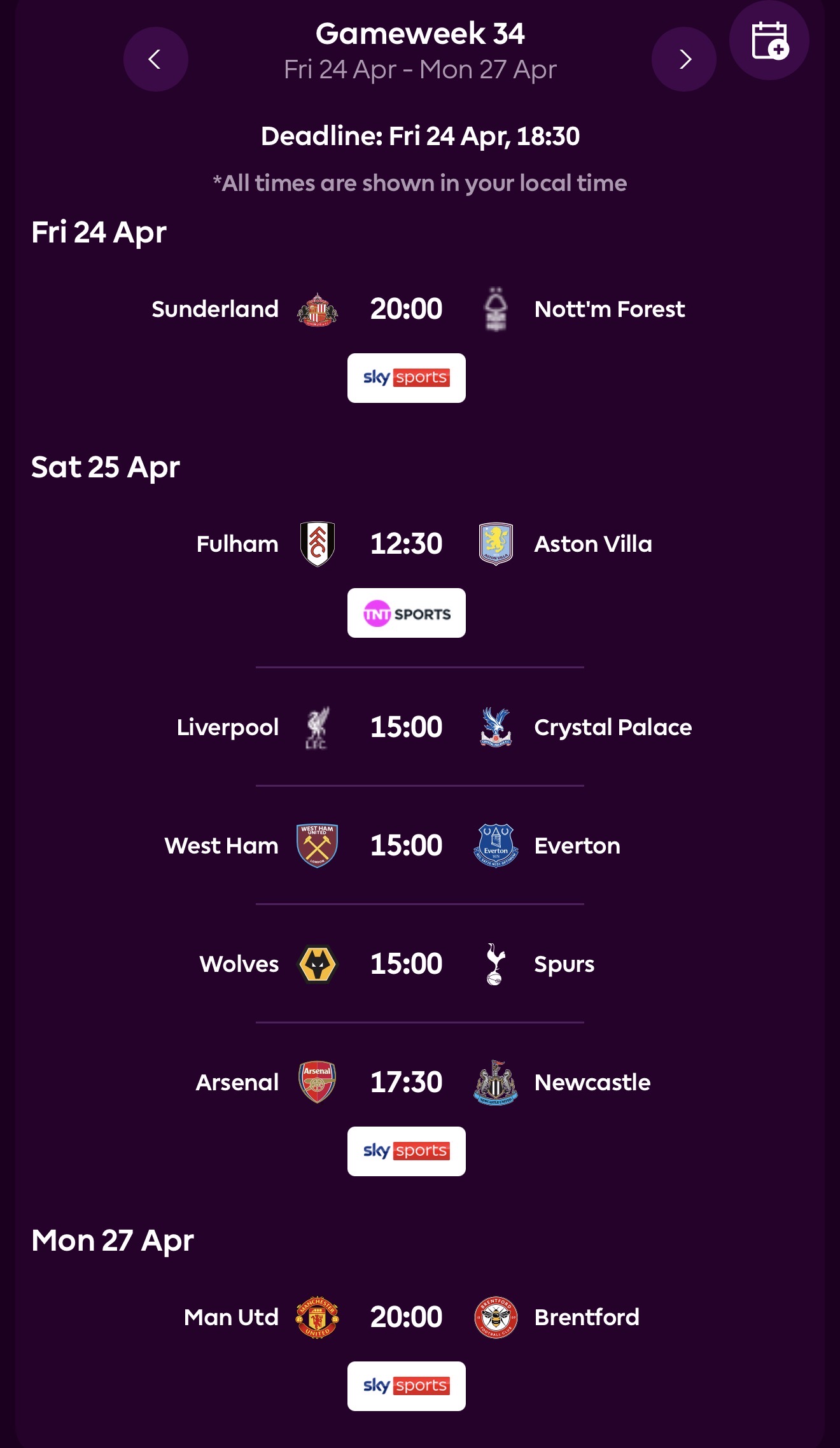 GW21 Deadline is: Saturday at 12.30pm