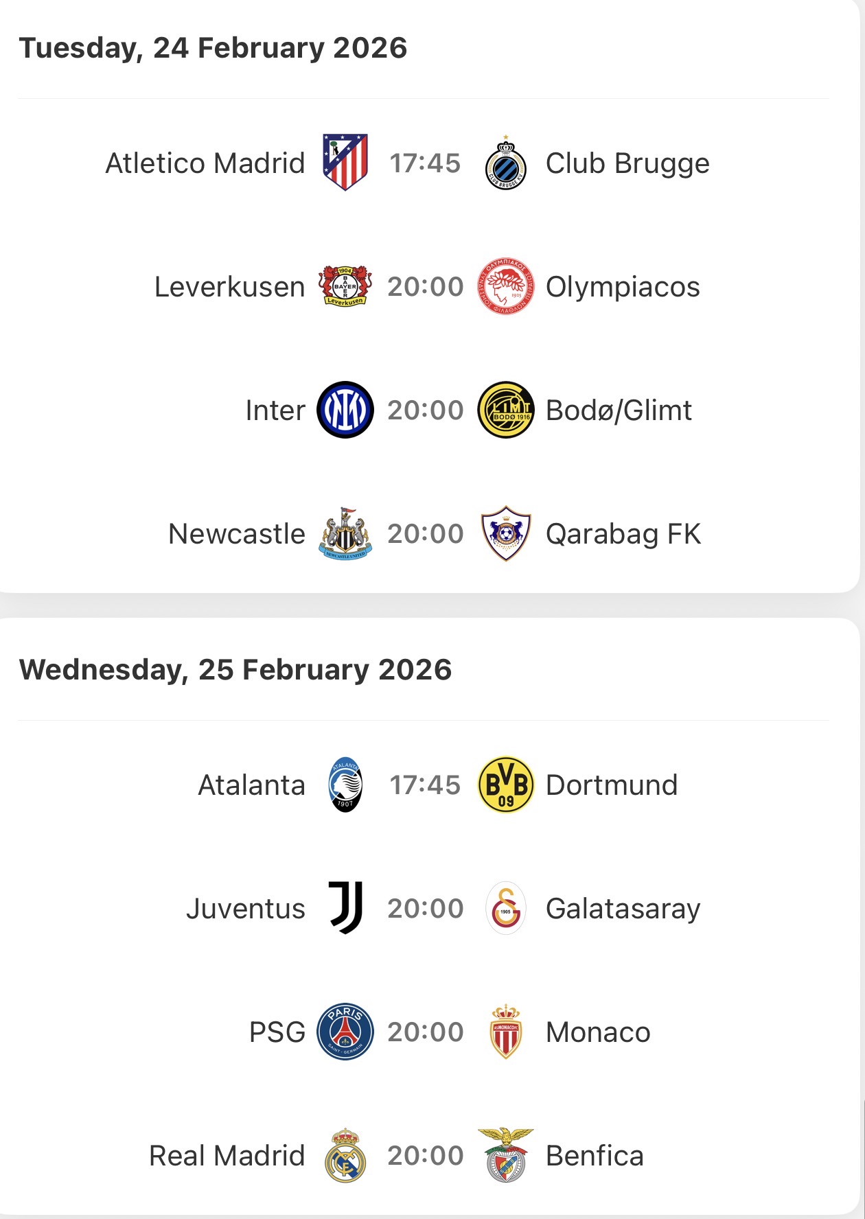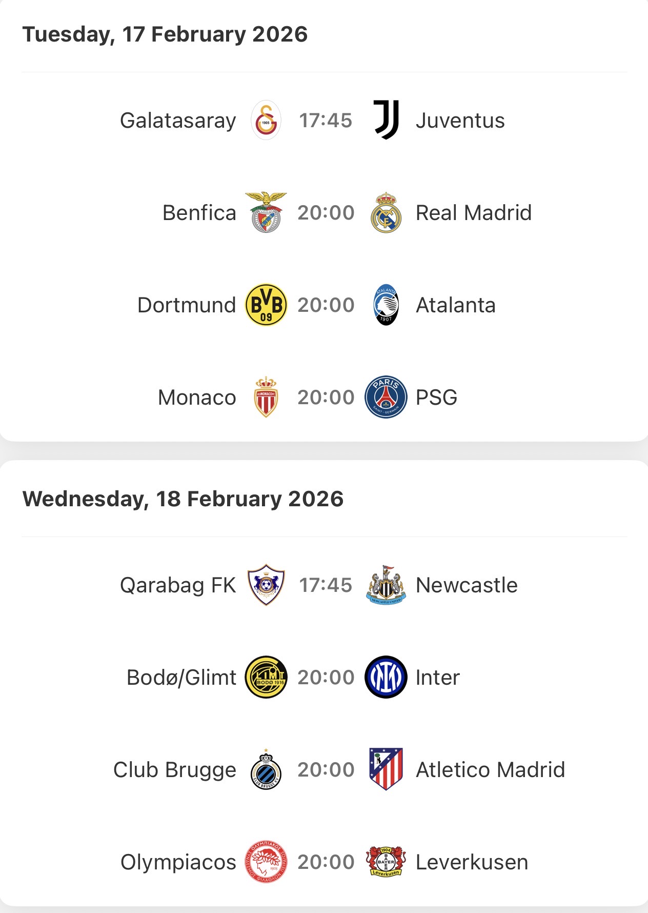 Draw will be on friday. There are no country restrictions from now. Dortmund vs Leverkusen or monaco vs psg is possible in playoffs. Top 8 can rest till march 10 which includes 5 pl teams.
