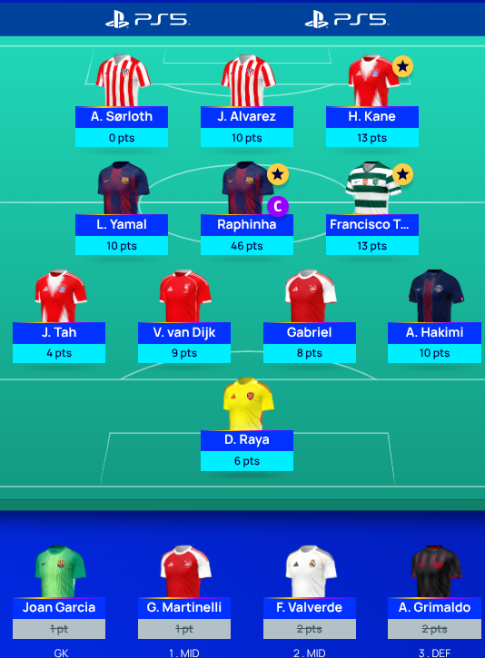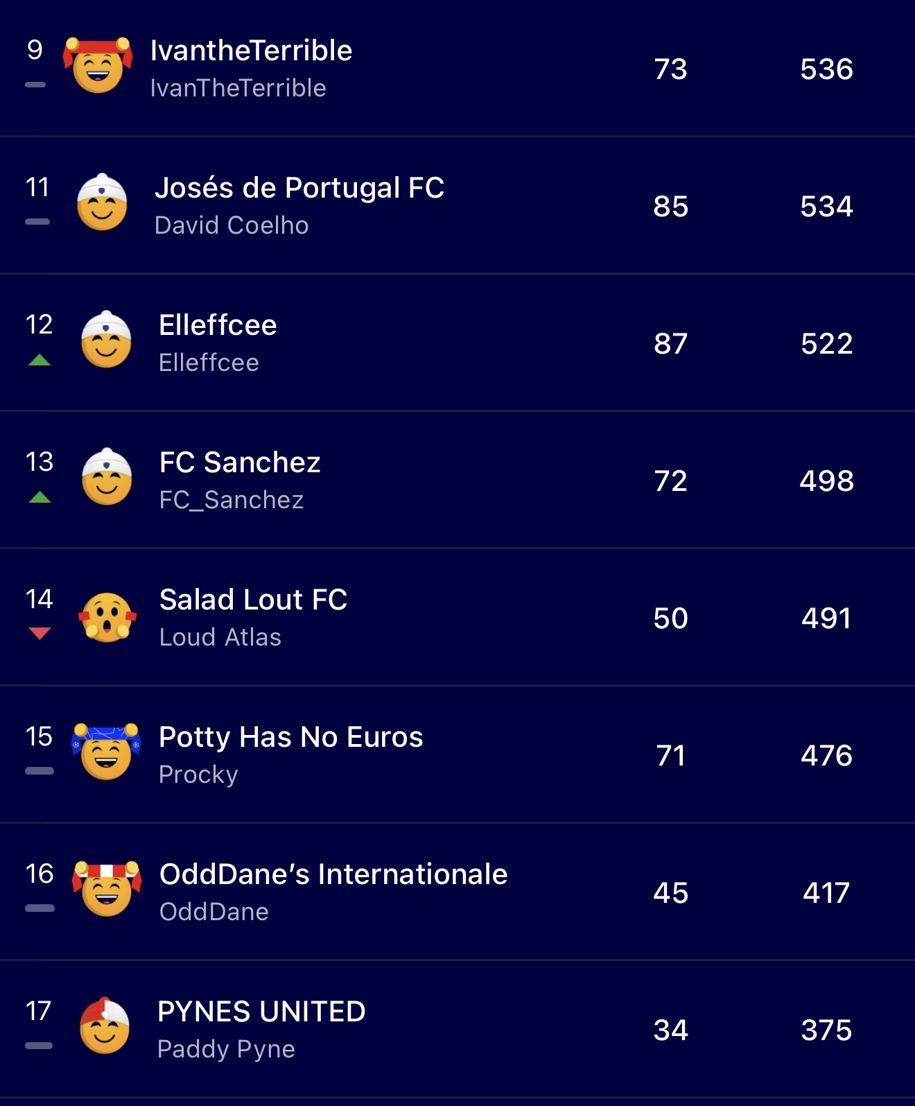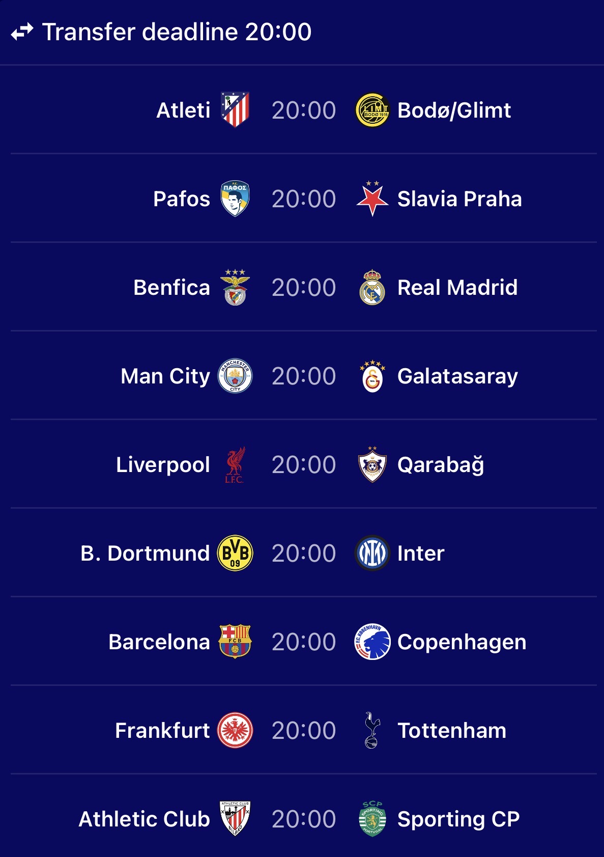 Deadlines are subject to change and will be at the time of kick-off of the first match of the matchday. So unlike FPL you do get to see the line-ups in advance and adjust accordingly. Just be aware that all 6 GW’s in the group stages now kick off with two early games so the deadline each time is 5.45pm UK time. Which also means you get to see the team sheets for four teams, not the full lot as in previous (and better!) seasons.