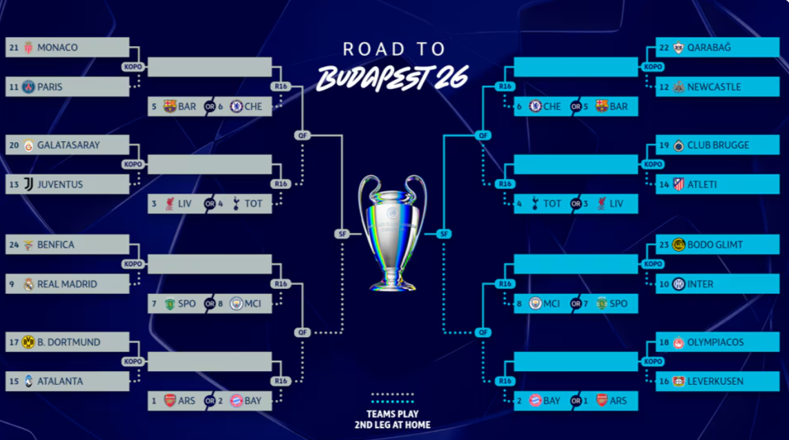 Draw will be on friday. There are no country restrictions from now. Dortmund vs Leverkusen or monaco vs psg is possible in playoffs. Top 8 can rest till march 10 which includes 5 pl teams.