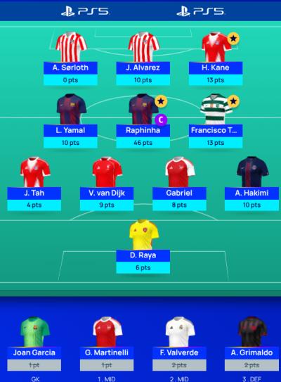 The main crux of the game at this stage though is the subtle difference between ‘Match Days’ and ‘GW’s’. CL is split into a Tuesday and a Wednesday format within the same GW. For Captains as well as Manual Subs you treat Tuesday as phase 1 of the GW and Wednesday as phase 2. And you can make changes to both in-between these. That’s what we meant in the intro by it being a bit hands on / interactive.