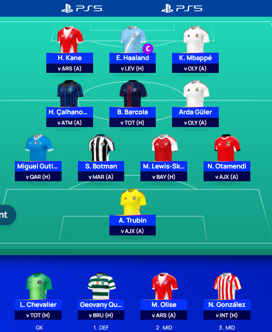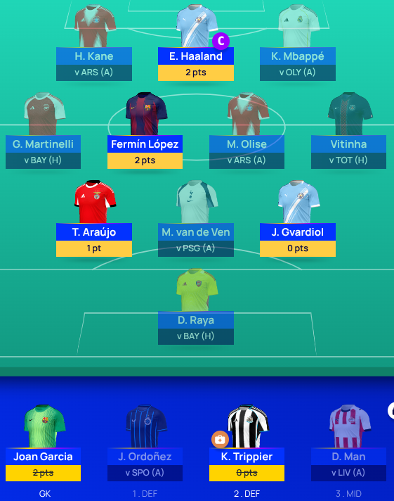 That’s true, it is quite unpredictable round and don’t think WC or LL can help much. Made the two transfers to get rid of injured Dumfries and Hakimi and brought in Napoli and Sporting defenders which leaves me with 3.2 ITB for the next MD. There could be a bit of a headache for tomorrows selection but will worry later.