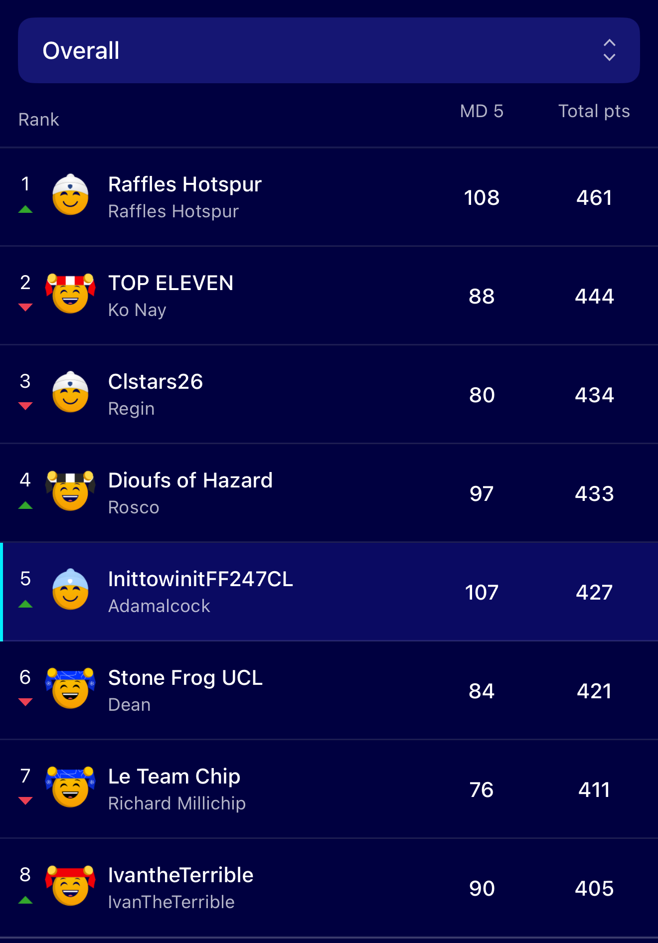 The format is a bit like the World Cup fantasy. For those who aren’t familiar with this it basically means a tad more planning as you can sub players in before they have played to replace those that already have. A quick example would be to pick a Chelsea guy, let’s call him Cole, for arguments sake. And maybe a Spurs guy, let’s call him Mohammed… Given as Cole plays on Day 1 you can put him in your X1 and see how he does, whilst placing Mo. K on your bench. If you like what you see from Cole then you can leave him in the team. If he has a stinker then you can simply activate manual subs and bring Mo in to replace him for his later game. Simples, really. Don’t pick Cole :no: