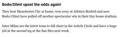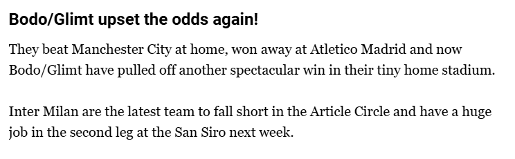 It wont be easy on artificial grass in the arctic, remember what happened last month to Man City……