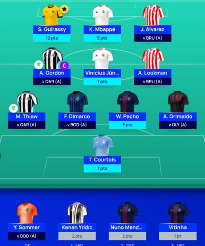 Atleast c grimaldo gets the pts i didn’t get by getting gordon last week. Will take the 24 pts as captain.