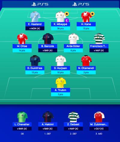 I just went for Zubi and left the two Sporting boys on the bench. Swapped Trubin with Chavalier as well. The Barca vs PSG will be a high scoring game from both sides but hoping for some saves.